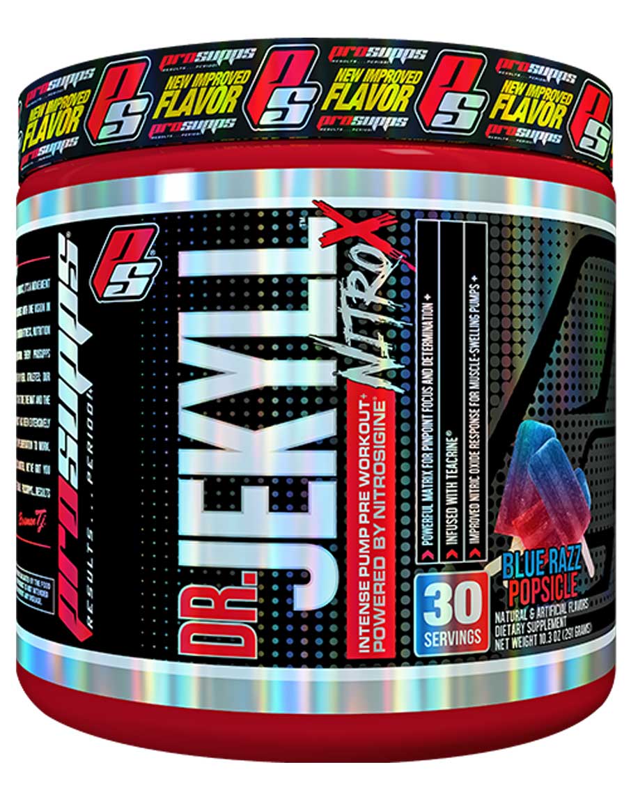 ProSupps Dr. Jekyll NitroX is the all new and improved, ultimate low stem, pump-inducing pre-workout formula that combines a nitric oxide response blend with a potent matrix for tunnel vision focus and drive.