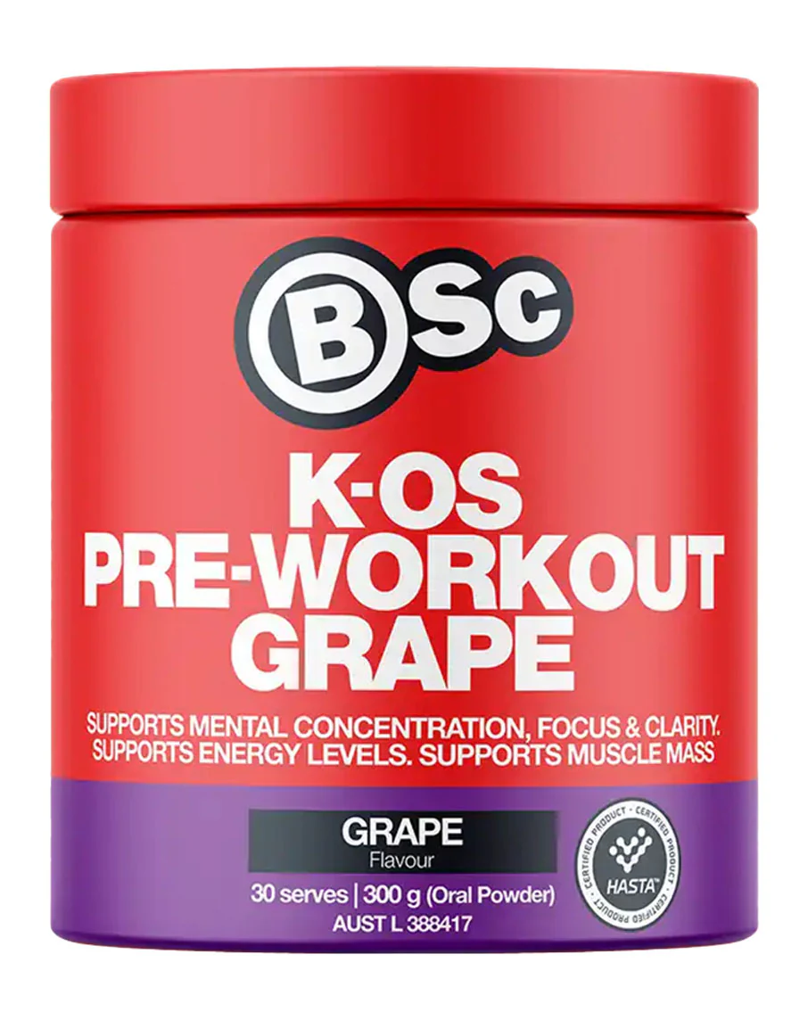 For a reliable, HASTA certified pre workout with caffeine, creatine and BCAAs, K-OS Pre Workout by BSc Supplements (formerly Body Science BSc) is ready to power your next session.