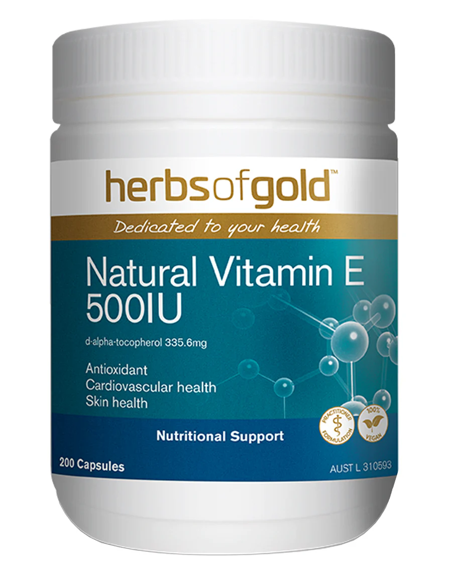 Natural Vitamin E 500 I.U. by Herbs of Gold has been formulated with a natural form of vitamin E. The benefits of vitamin E to the body include support of general health, immune system and reduction of mild eczema or dermatitis symptoms.